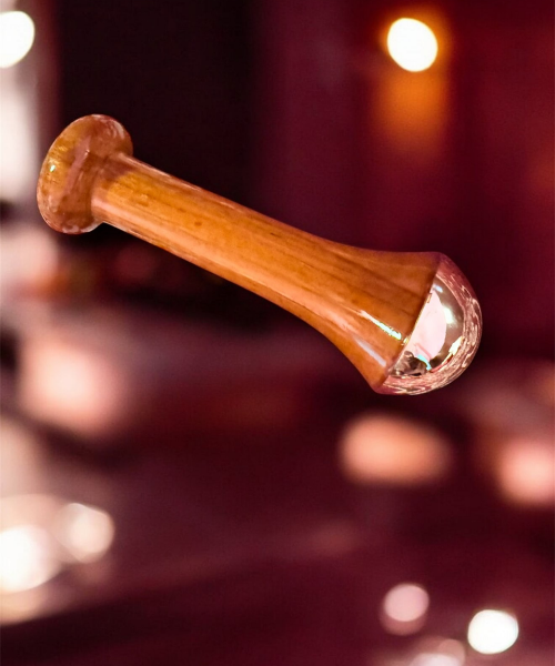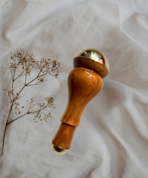 Elevate your wellness routine with this beautifully crafted Ayurvedic Kansa wand massager. Featuring a distinctive curved Kansa metal head and a smooth, polished wooden handle, this premium massage tool combines ancient Ayurvedic wisdom with elegant design.